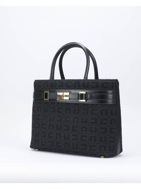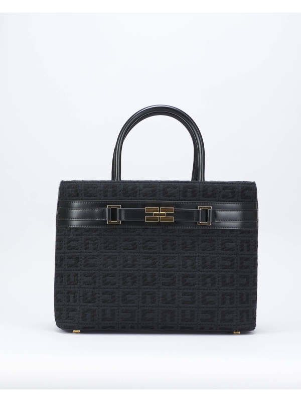 Ženska crna Elisabetta Franchi shopper torba od jacquard tkanine