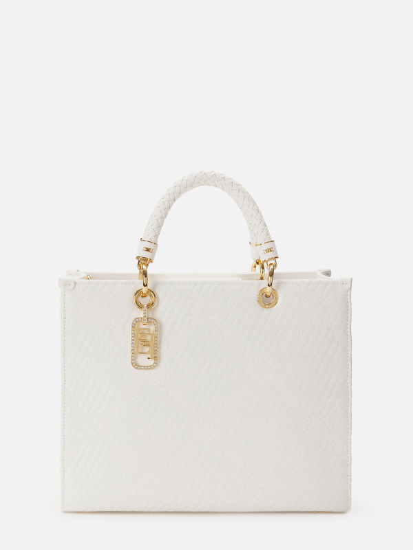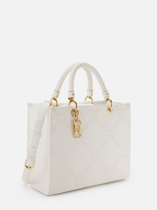 Ženska bijela Elisabetta Franchi torba od jacquarda s privjeskom