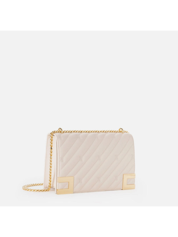 U sintetičkom sintetičkom materijalu nappa s efektom Matalassé za prikupljanje. Patta zatvaranje, pločice s logotipom sa strane i zlatni metalni grom za prenosivost na ramenu.