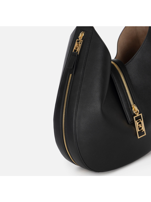 Ženska crna Elisabetta Franchi hobo torba s patetnim zatvaračem
