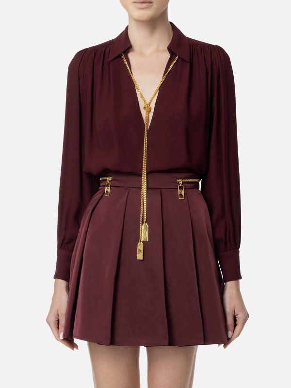 Ženska bordo Elisabetta Franchi bluza s ogrlicom
