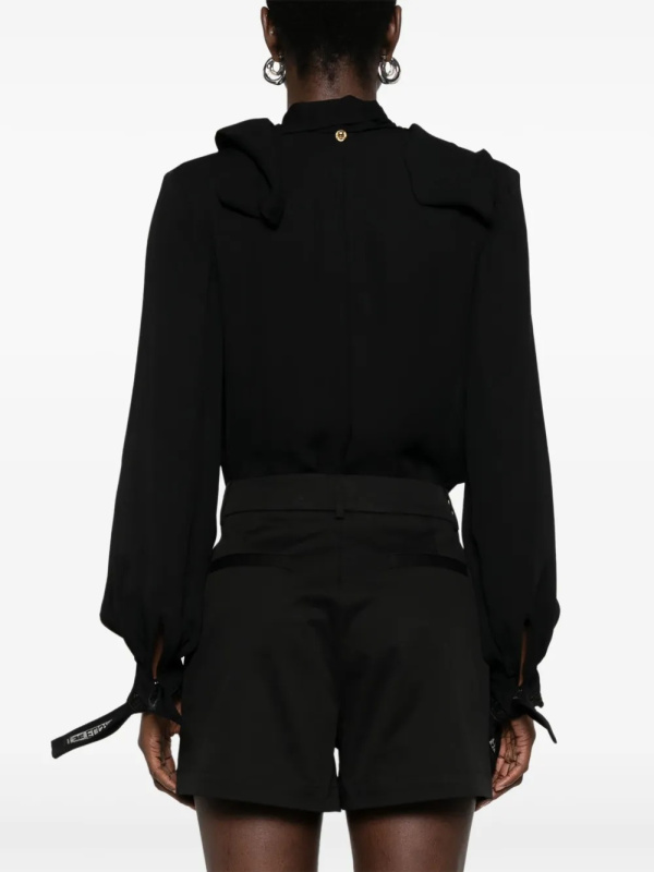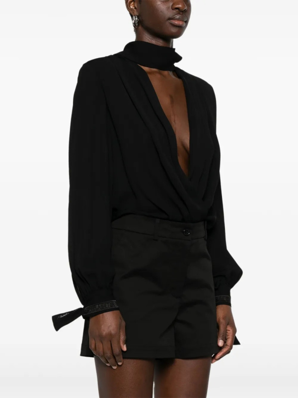 Ženski crni Elisabetta Franchi bodi od žoržeta s ovratnikom na vezanje