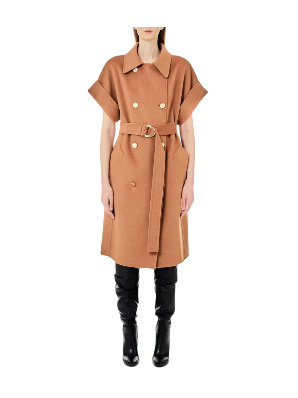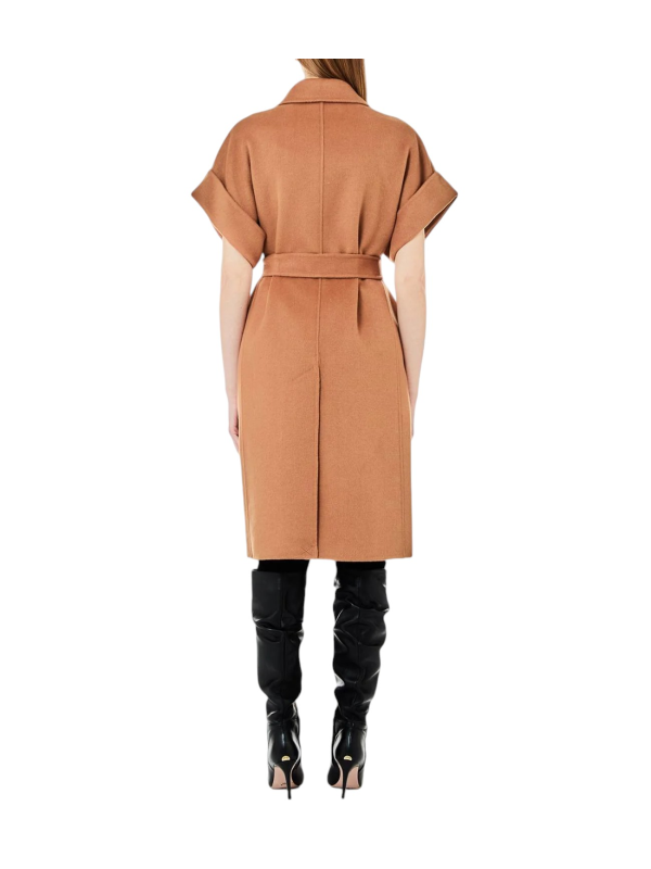 Ženski smeđi Liu Jo kaput prsluk s pojasom na struku i metalnom kopčom