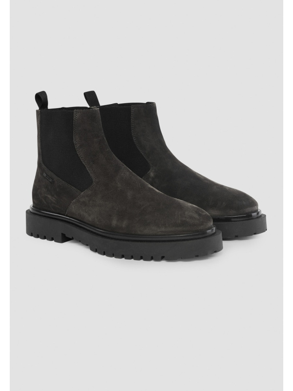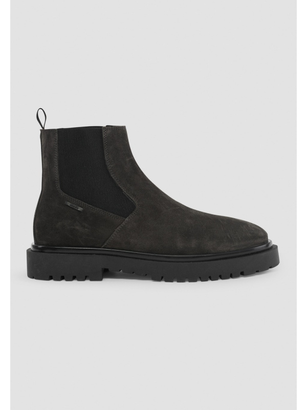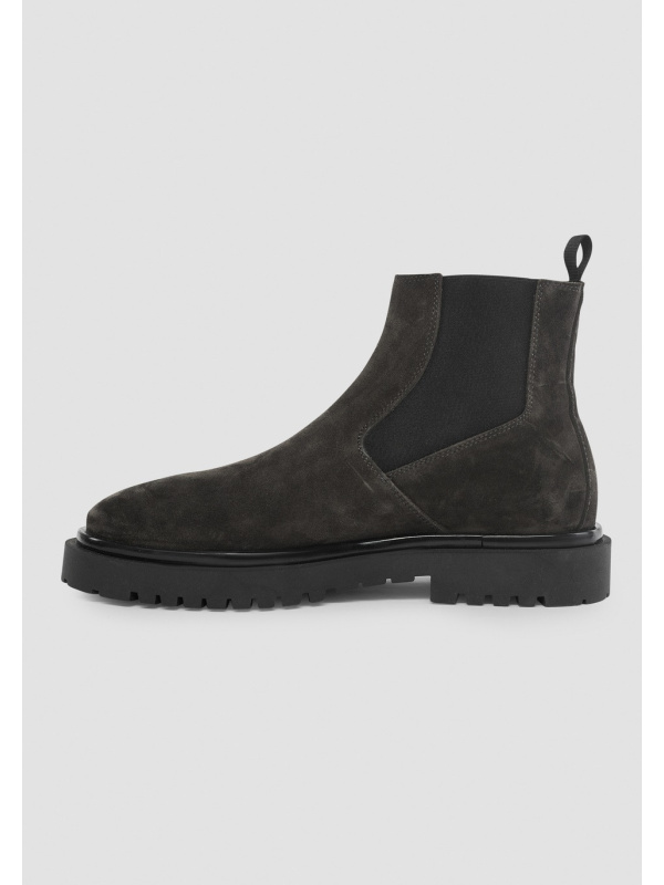 Poboljšajte svoju garderobu ovim Chelsea čizmama od brušene kože s logotipom sa strane, za elegantan, ali funkcionalan stil. Elastični bokovi i pletena omča na stražnjoj strani čine ih udobnima za nošenje i navlačenje.