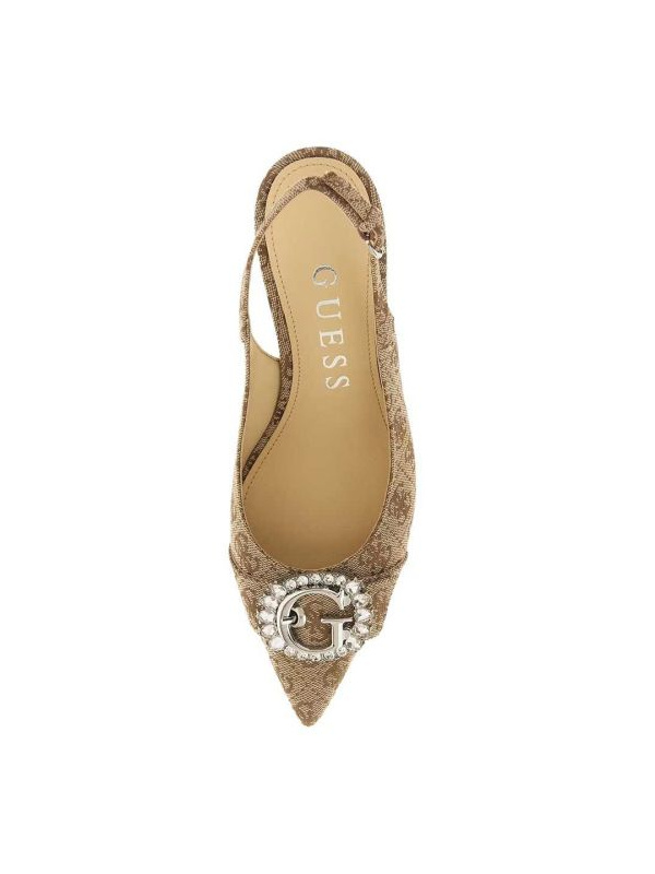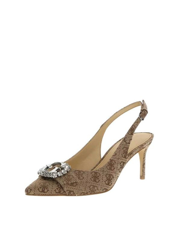 Guess Branca2 urbano-elegantne smeđe ženske cipele sa logo printom i srebrnom G šnalom koju krase kristali