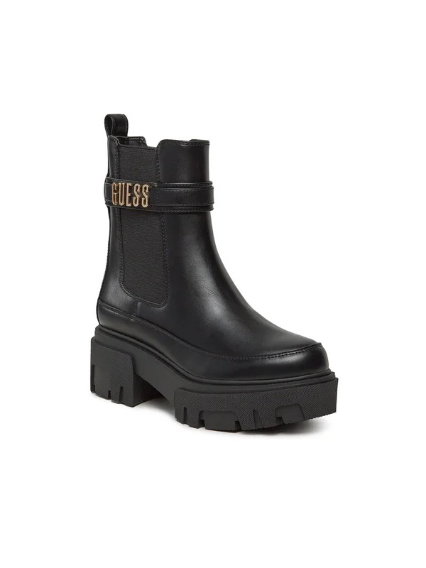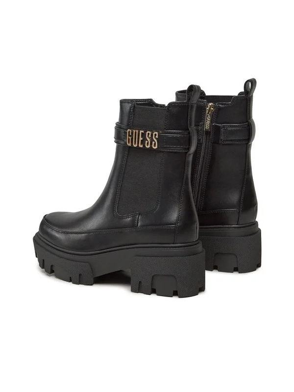 Ženske crne plitke Guess Yelma čizme s elastičnim panelima i zipom