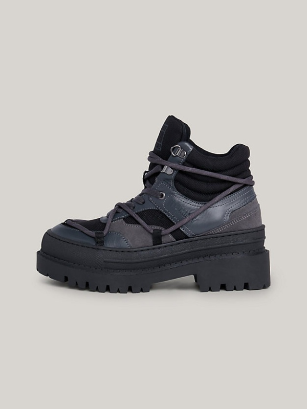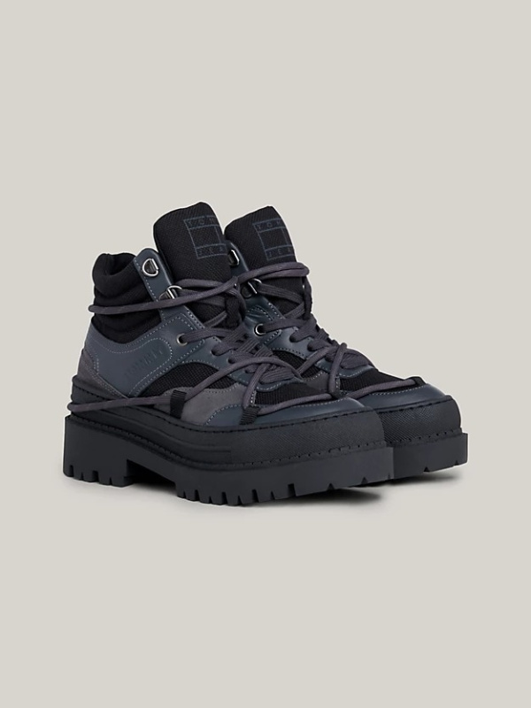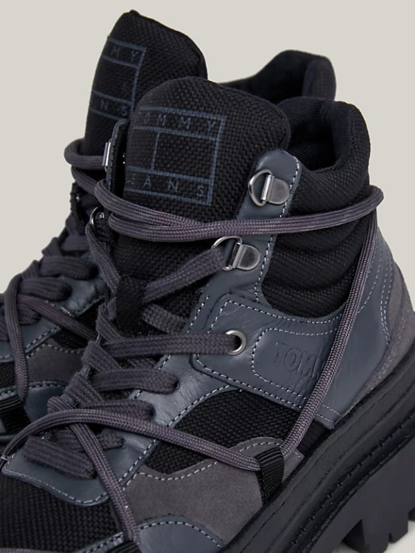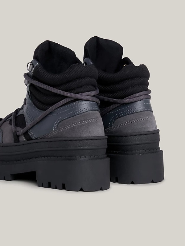Ove hibridne gležnjače kombiniraju izgled inspiriran planinarenjem i stil tenisica s obloženim gornjim dijelom, debelim potplatima i detaljima užeta