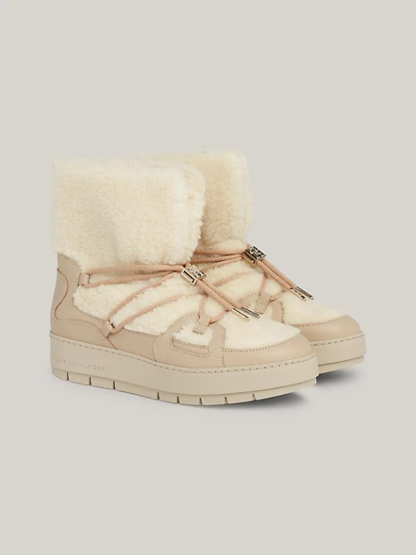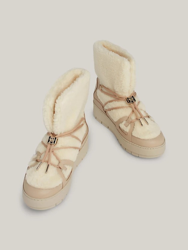Držite stopala udobna uz ove čizme za snijeg s naborima izrađene od teksturiranih plišanih ploča i s monogramom TH na kopči.