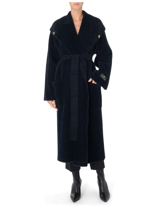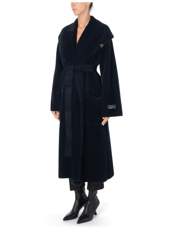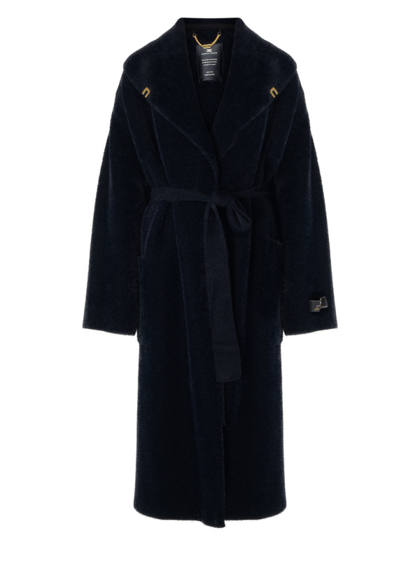 Ženski crni Elisabetta Franchi pleteni krzneni ogrtač kaput