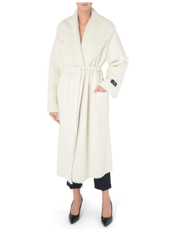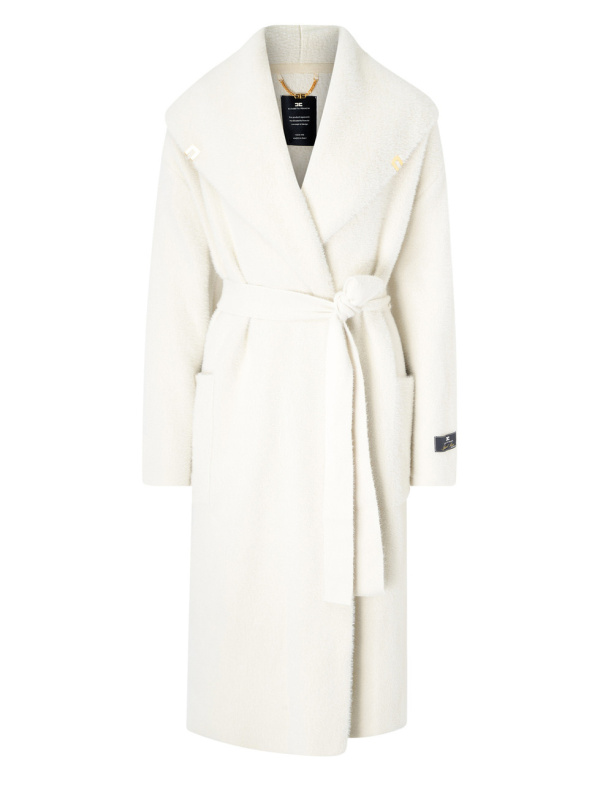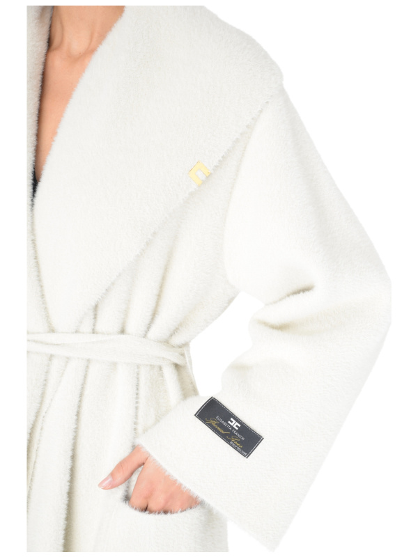 Ženski Elisabetta Franchi kaput od mliječnobijelog krznenog pletiva