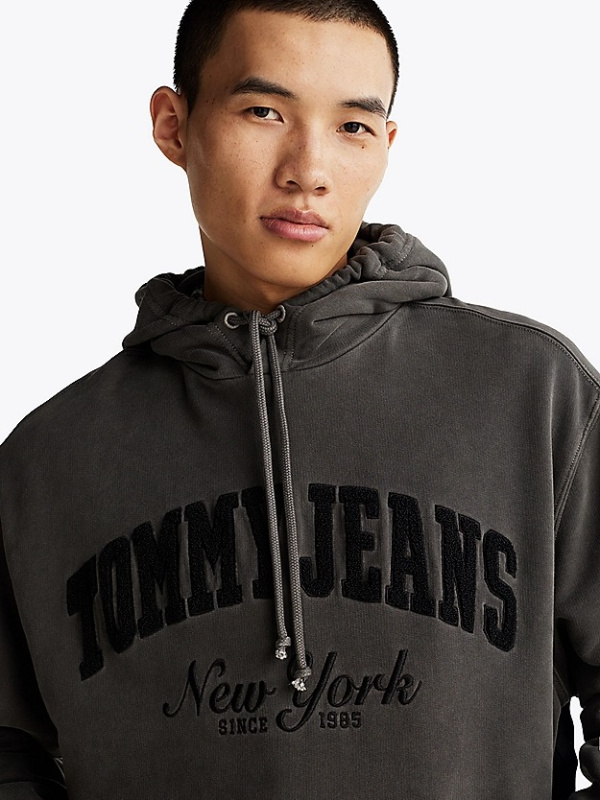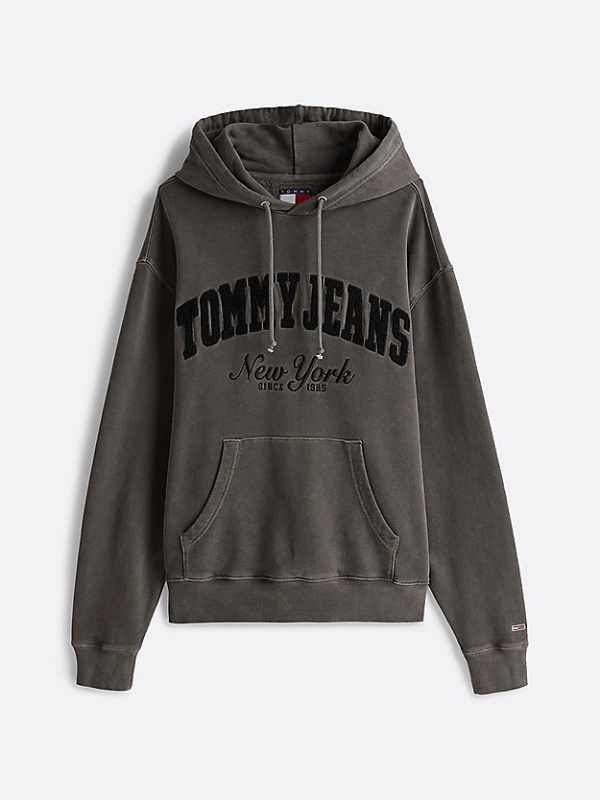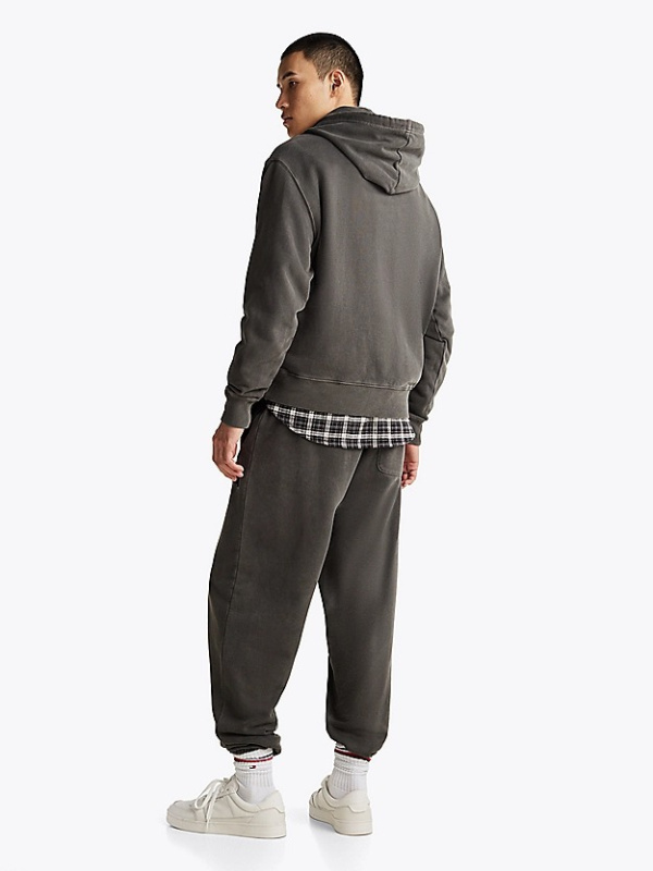 Muška siva "isprana" Tommy Hilfiger dukserica s logom na prsima, džepom i kapuljačom