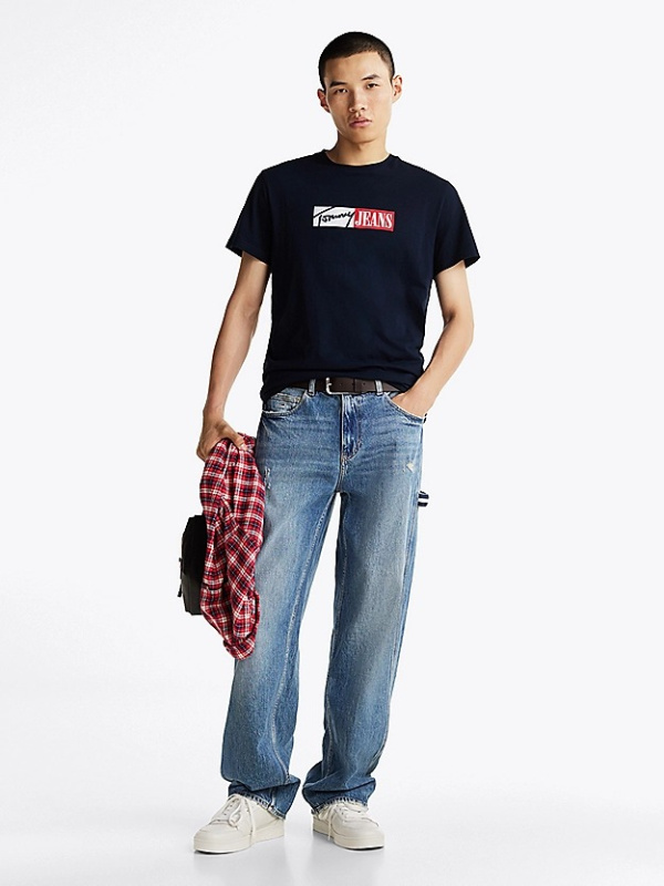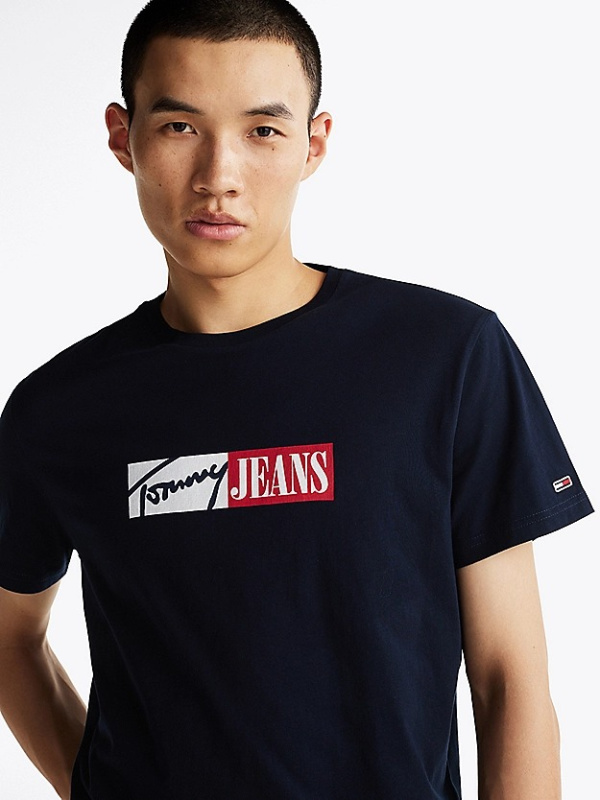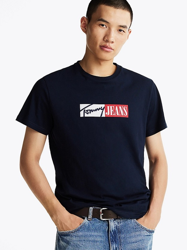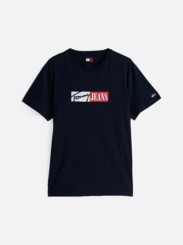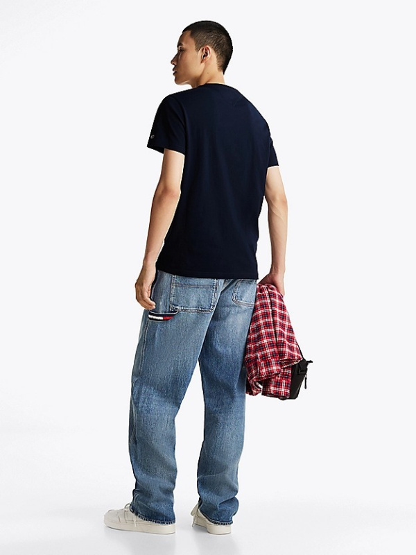 Muška tamnoplava Tommy Hilfiger majica kratkih rukava s logo printom na prsima i logom na rukavu