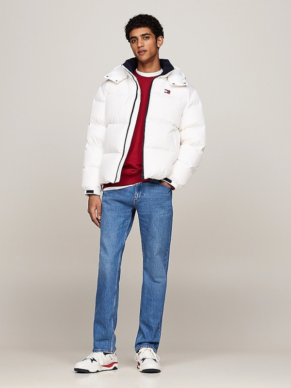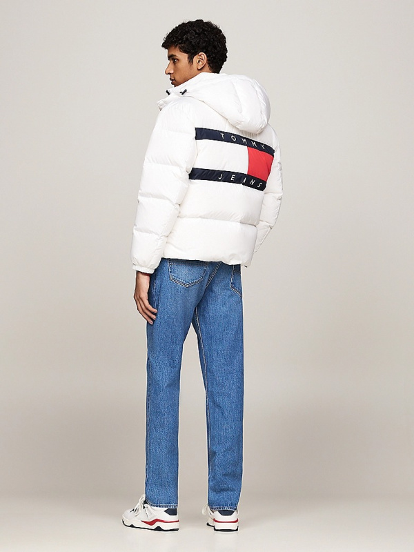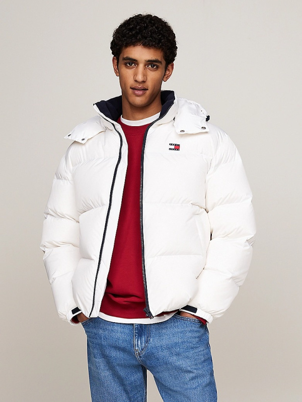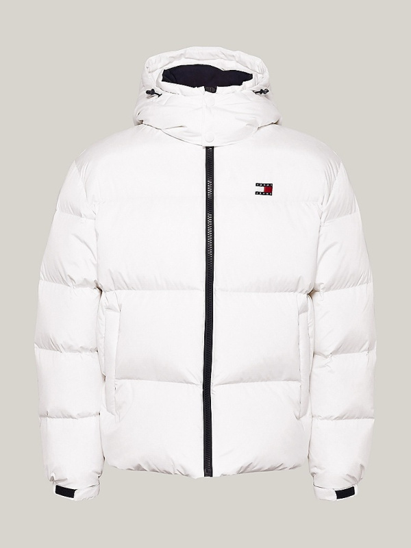 Muška bijela Tommy Hilfiger Alaska puffer jakna s malim logom na prsima i velikim na leđima