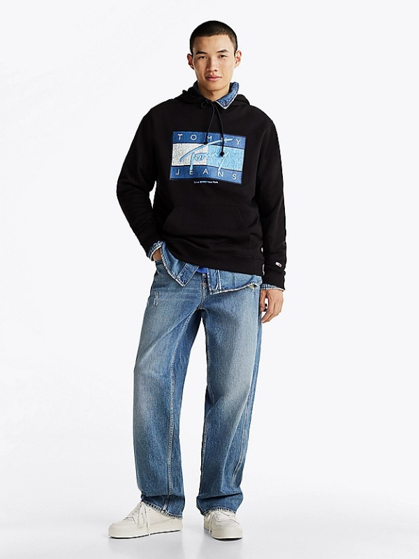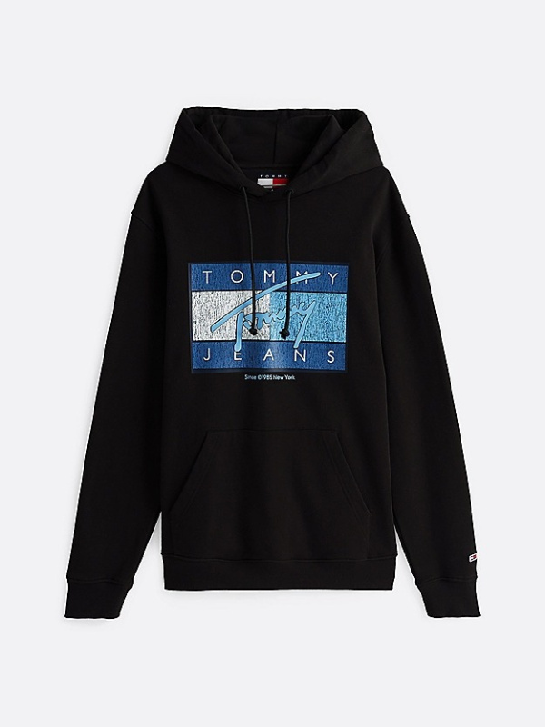 Muška crna Tommy Hilfiger dukserica s logom na prsima, džepom i kapuljačom