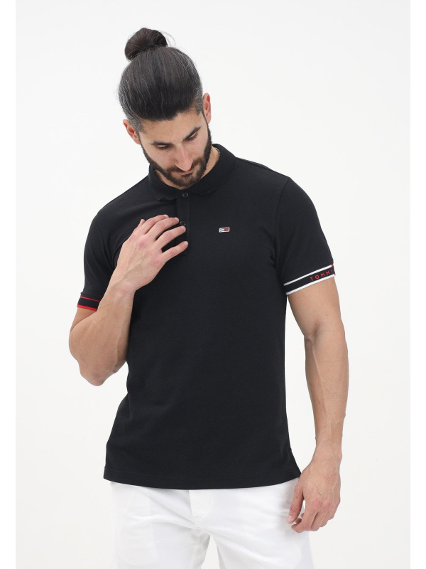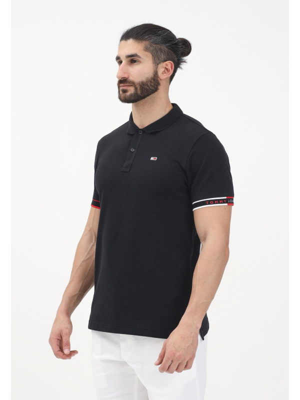 Muška crna Tommy Hilfiger polo majica kratkih rukava s logom na prsima i trakama u boji na rukavima