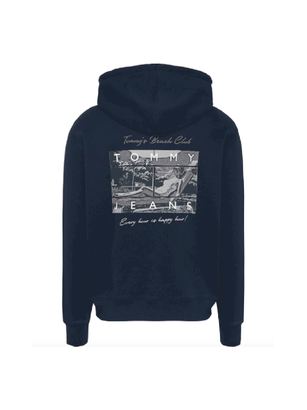 Muška tamnoplava Tomym Hilfiger dukserica s kapuljačom, džepom i printom na prsima