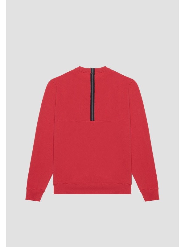 Trenirka bez kapuljače od jednobojnog mekanog rastezljivog pamuka, s kontrastnim gumiranim logotipom na prsima.
