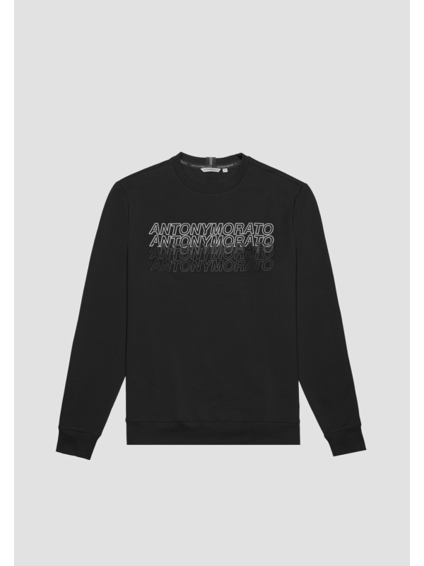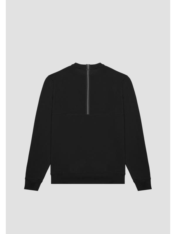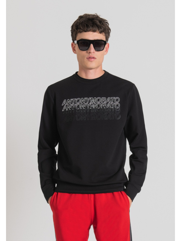 Trenirka bez kapuljače od jednobojnog mekanog rastezljivog pamuka, s kontrastnim gumiranim logotipom na prsima. Antony Morato predstavlja slim fit model s okruglim izrezom i elastičnim manšetama i donjim dijelom. To je idealan izbor za dodavanje daška karaktera najjednostavnijim odjevnim kombinacijama bez žrtvovanja udobnosti.