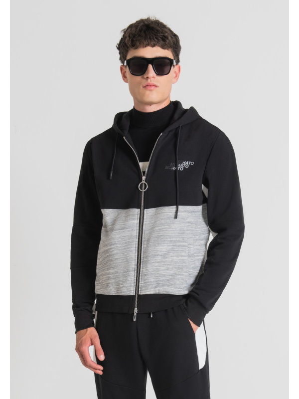 Antony Morato nudi ovu majicu s kapuljačom opuštenog kroja i dvostrukim kliznim metalnim zatvaračem.