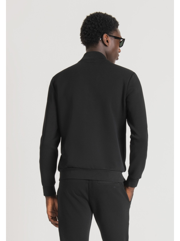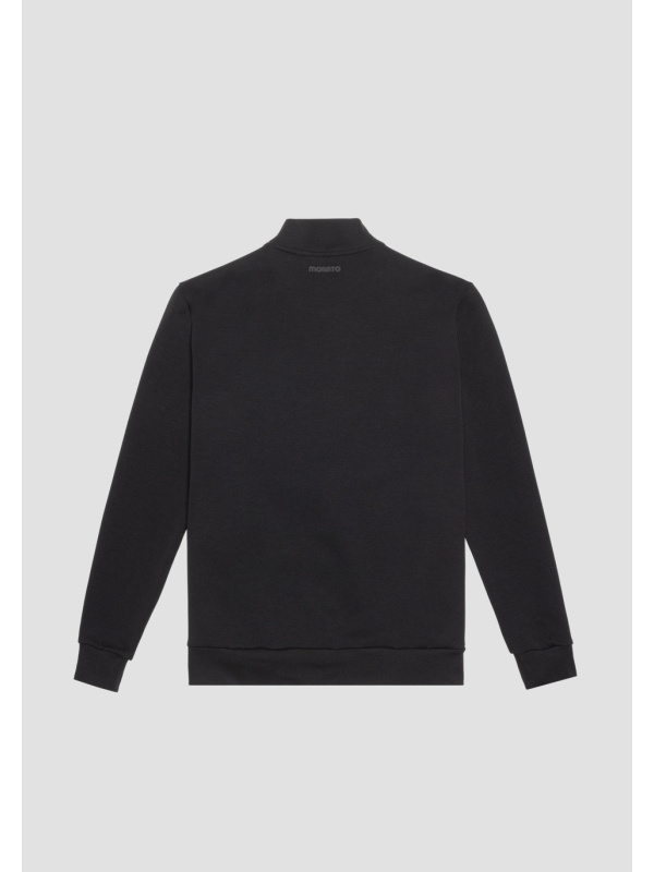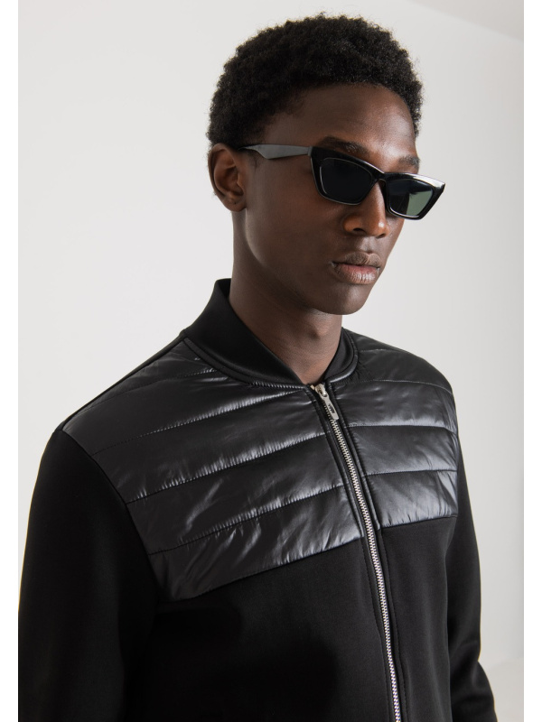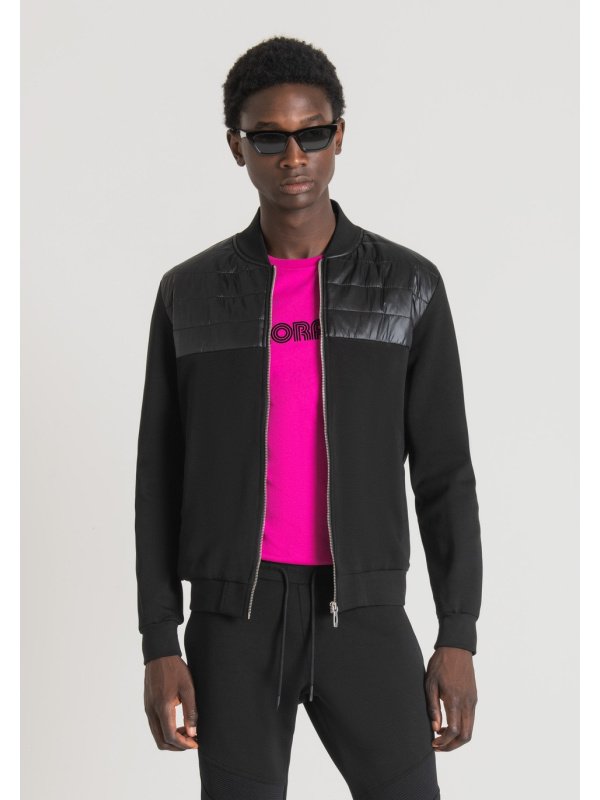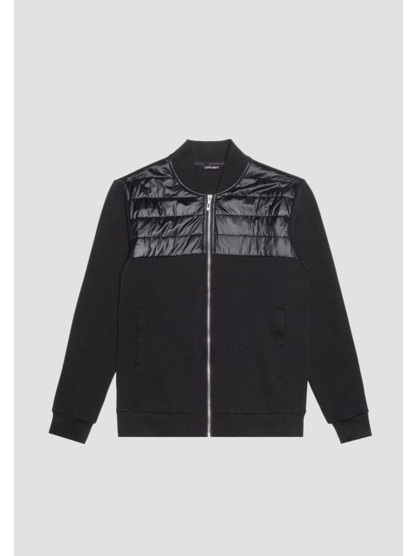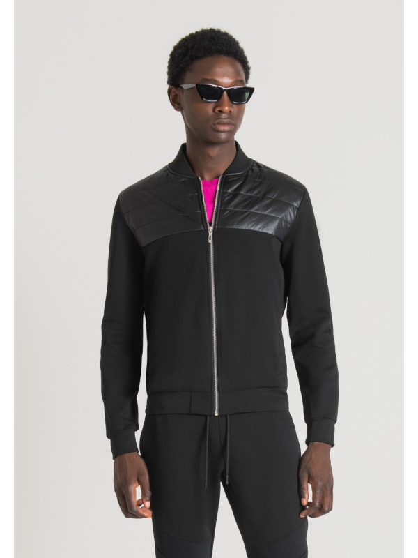Antony Morato osvježio je klasik garderobe za slobodno vrijeme i transformirao ga u suvremeni odjevni predmet s urbanim okusom. Ova majica bez kapuljače igra se s materijalima i teksturama, izmjenjujući jednobojnu tkaninu od mješavine pamuka sa sjajnim najlonskim umetkom na prednjoj strani. Model je upotpunjen otvorom sa središnjim metalnim patentnim zatvaračem i prednjim džepovima.
