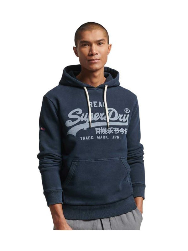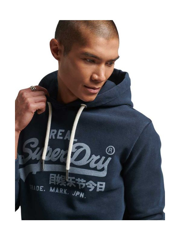 • Vintage Logo teget muški duks sa plavim Superdry natpisom
