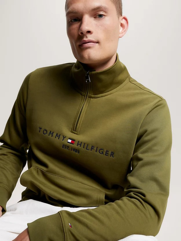 Uključite se u sportski stil u ovoj trenirci, sa zatvaračem na pola patentnog zatvarača na visokom ovratniku i klasičnim klokanica džepom