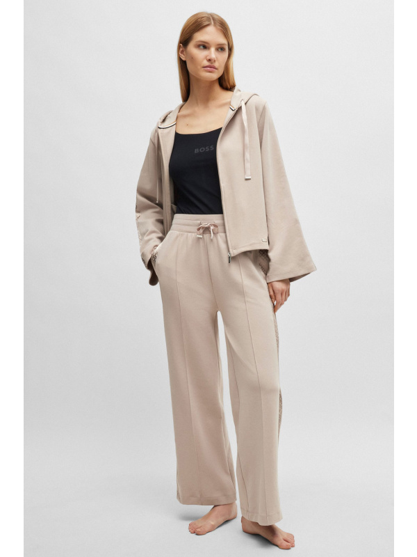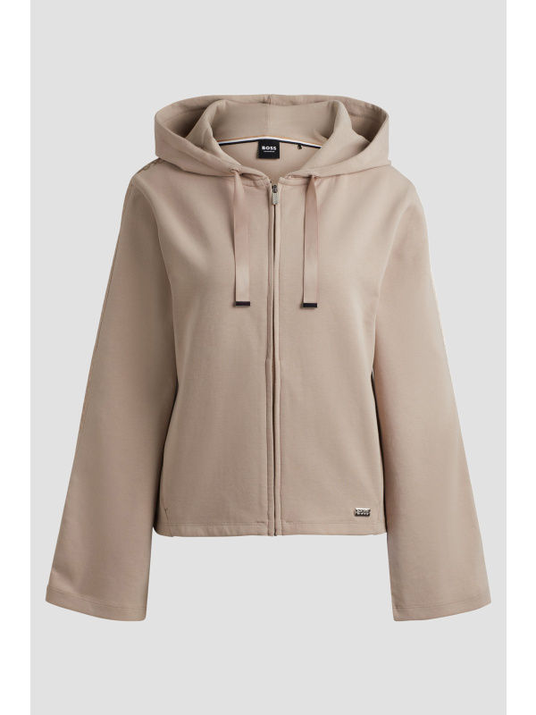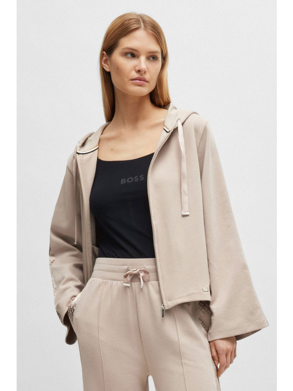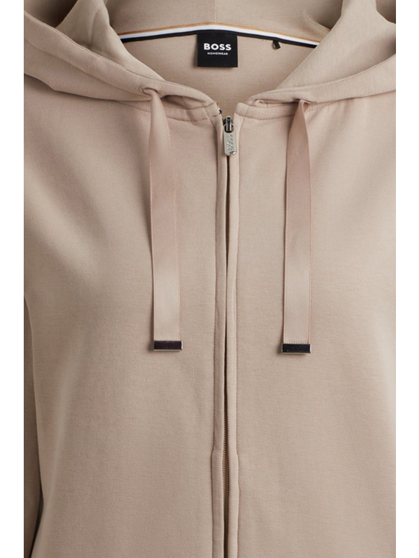 Ženska BOSS bež dukserica s patetnim zatvaračem i kapuljačom