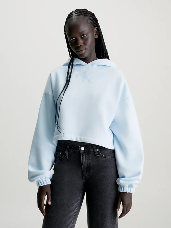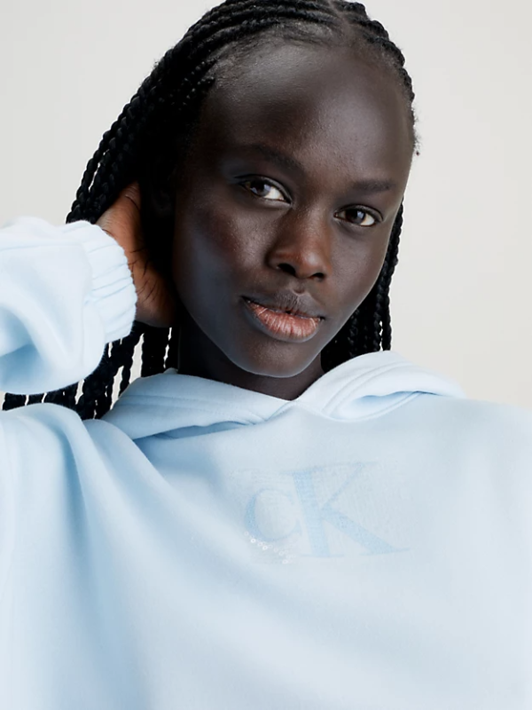 Ženski plavi Calvin Klein duks s kapuljačom i šljokicama
