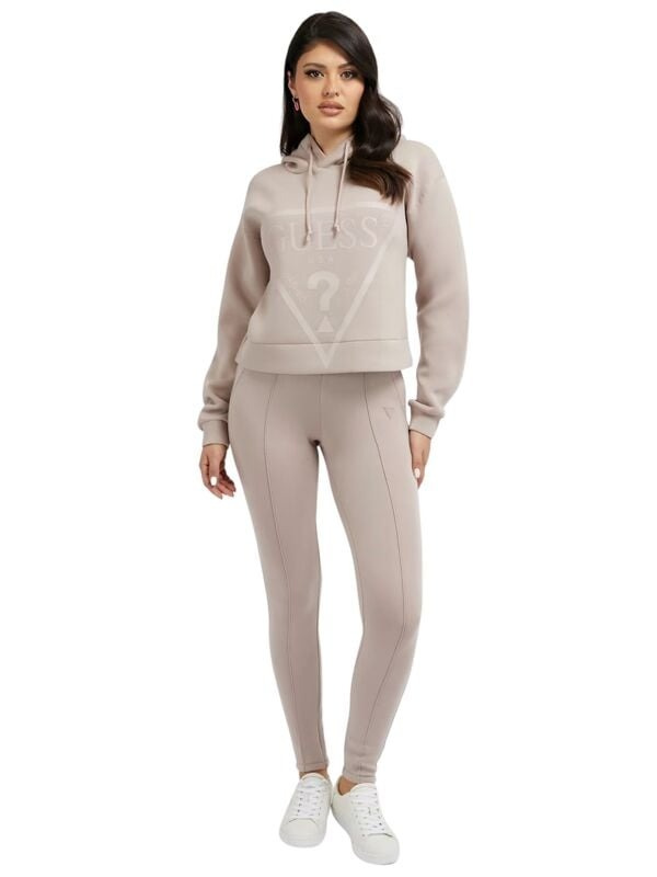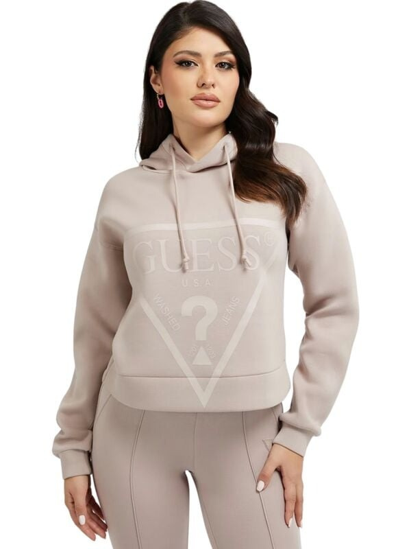 Ženska puder roza Guess Athleisure Alisa dukserica s maxi logo printom