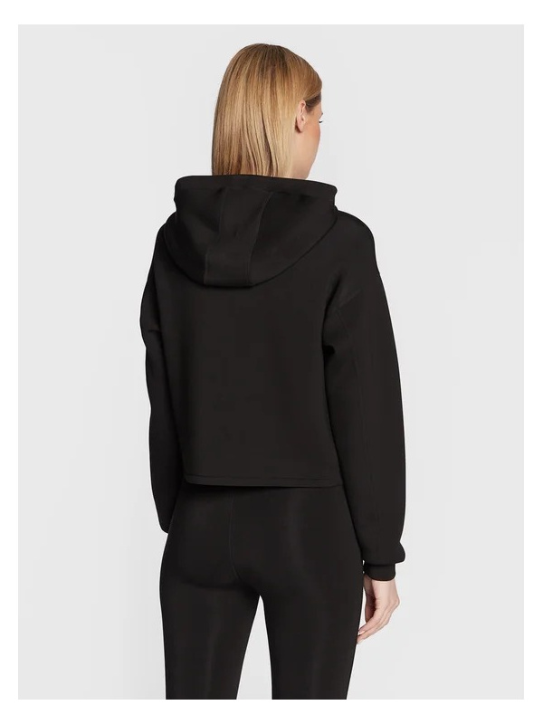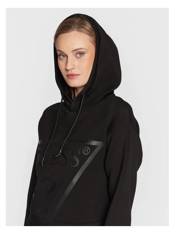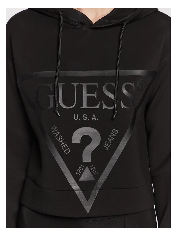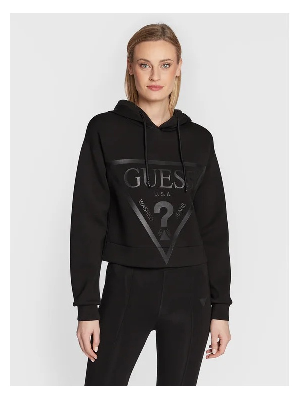 Ženska crna Guess dukserica s kapuljačom i printom na prsima