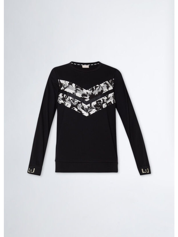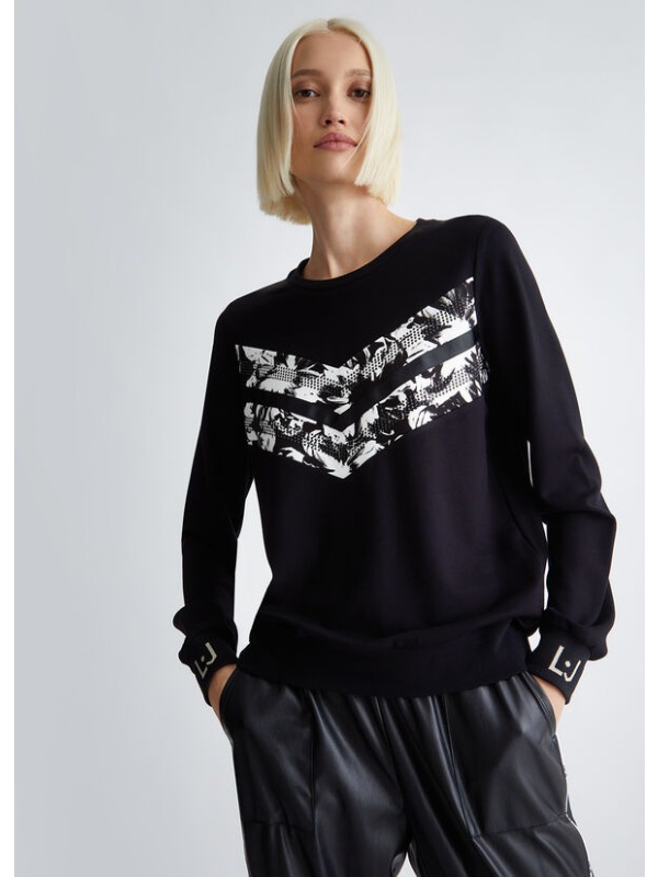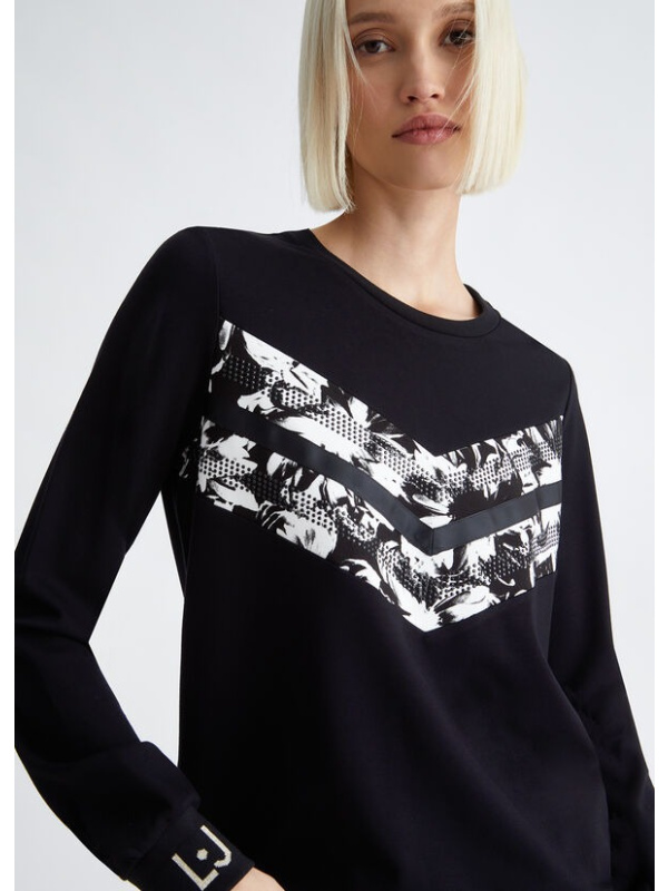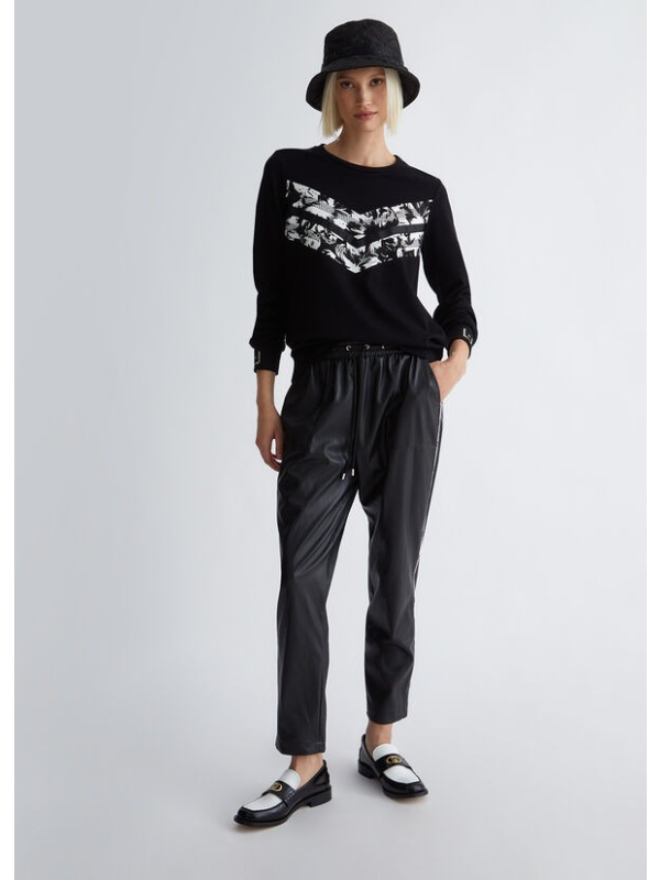 • LIU JO crna 'eco-friendly' majica sa bijelim detaljima od rastezljive viskoze