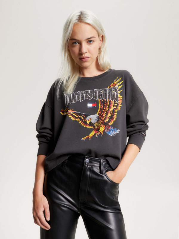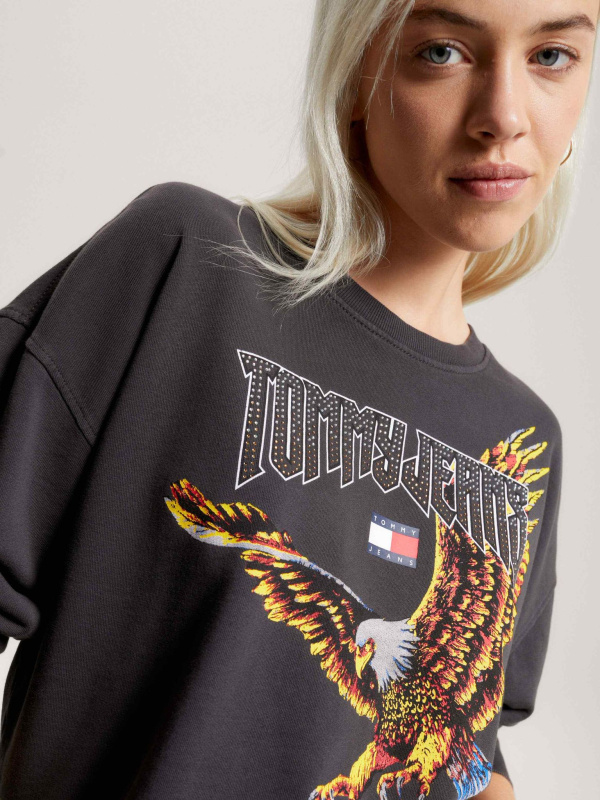 Ova skraćena duksa u vintage stilu ima print orla i logo inspiriran rockom na prednjoj strani. Flis od čistog pamuka.