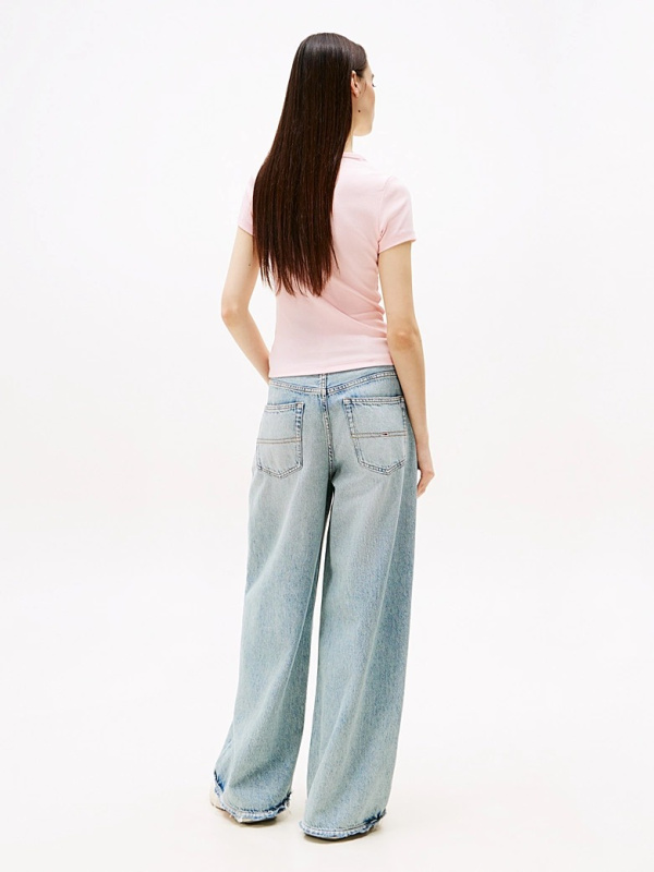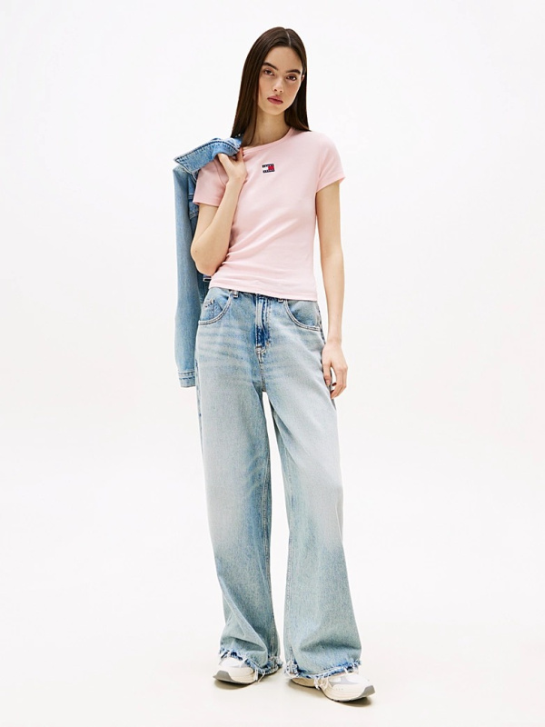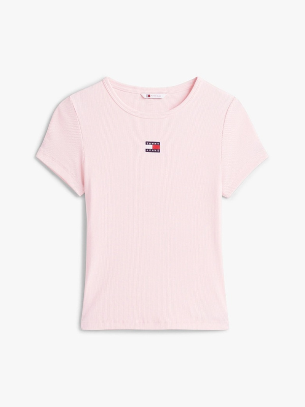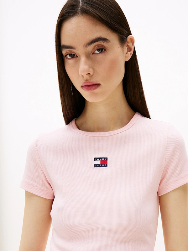 Ženska svijetloroza rebrasta Tommy Hilfiger majica kratkih rukava s logom na prsima