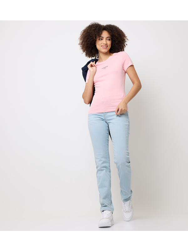 Ženska roza Tommy Hilfiger majica kratkih rukava s logom na prsima