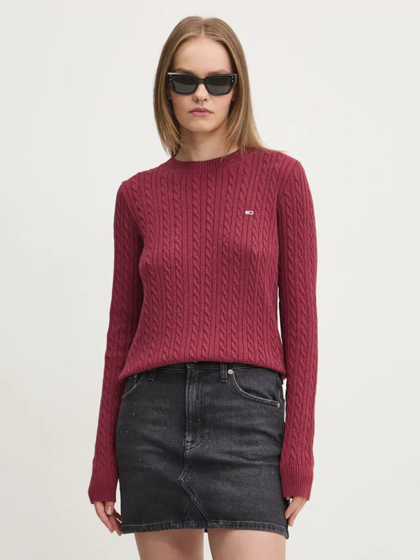 Ženski Tommy Hilfiger tamnocrveni pulover s kigin