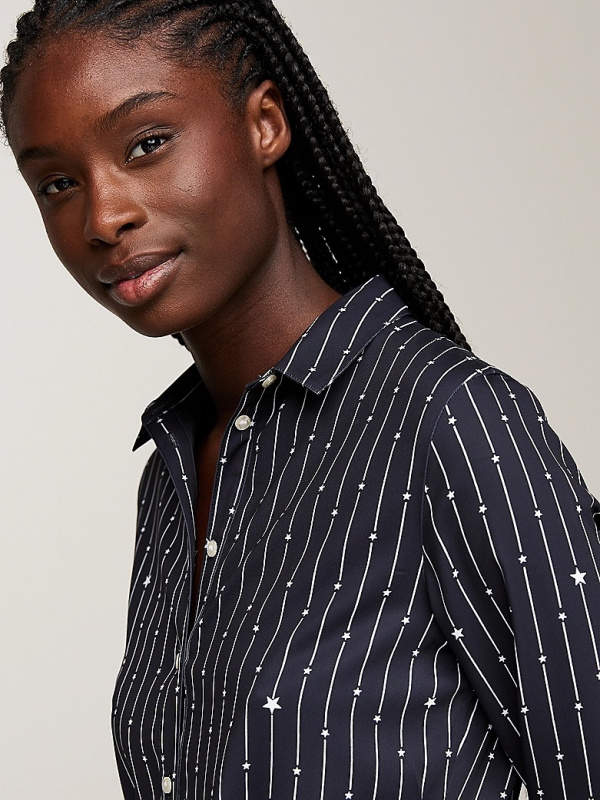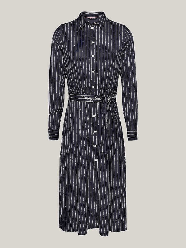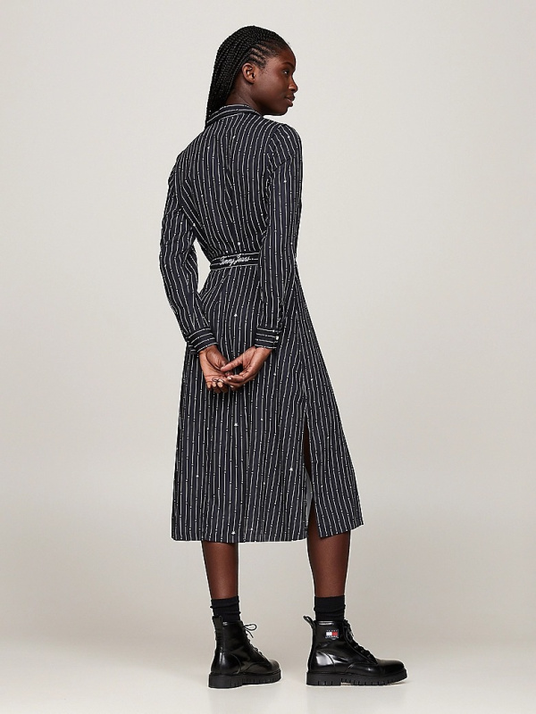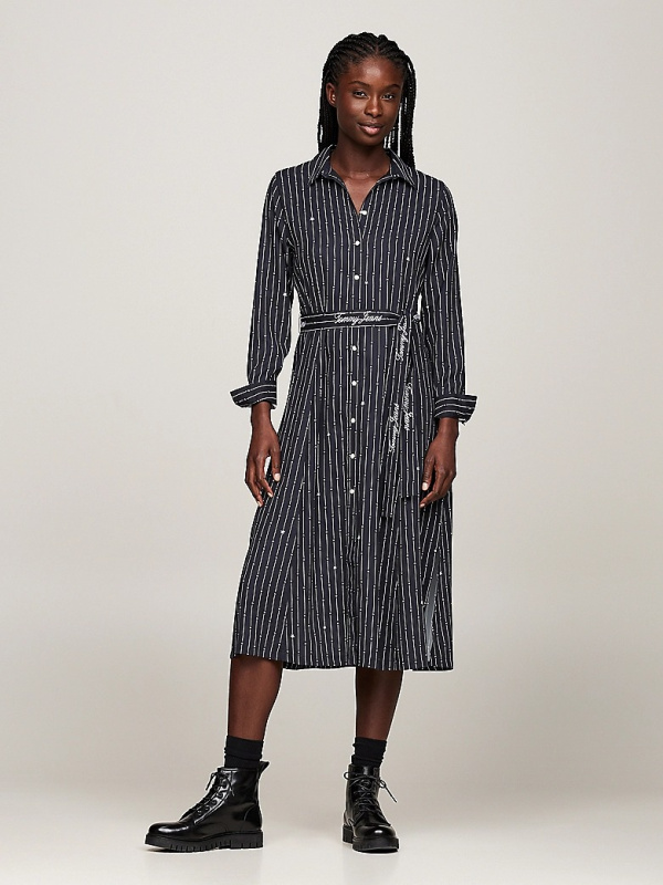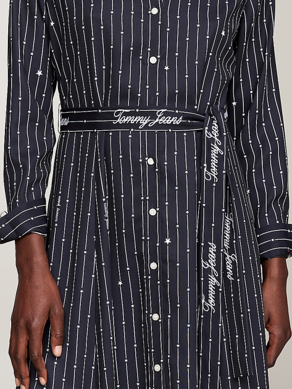 Ženska crna Tommy Hilfiger haljina sa zvjezdanim prugama i remenom