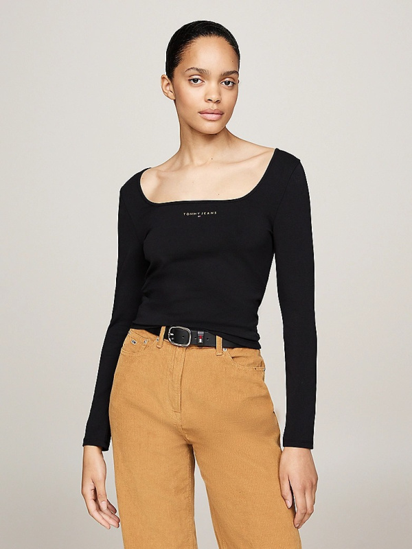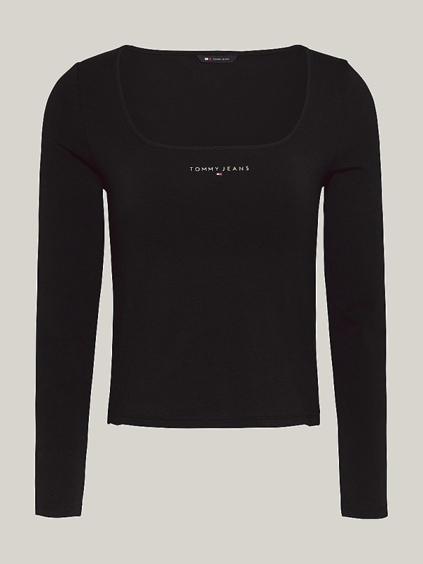 Ženska crna Tommy Hilfiger majica dugih rukava s logom na prsima