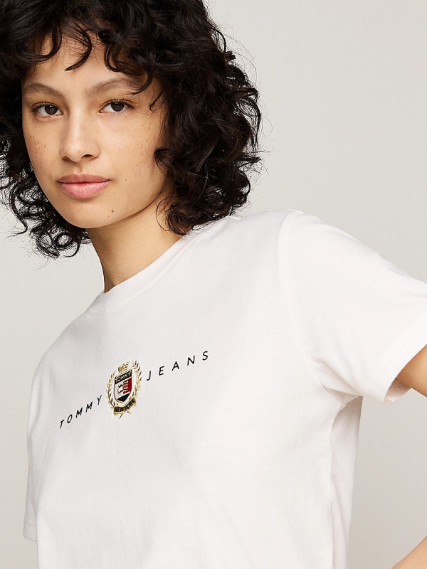Ženska bijela Tommy Hilfiger majica kratkih rukava s logo printom na prsima