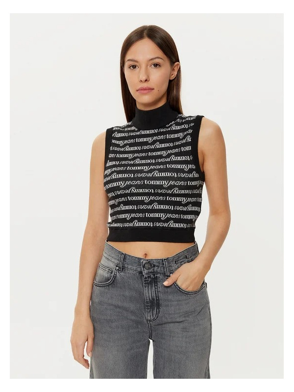 Ženski crni Tommy Hilfiger top pulover bez rukava s all-over printom