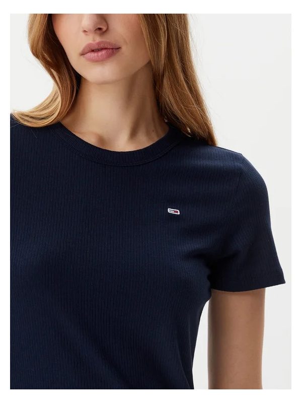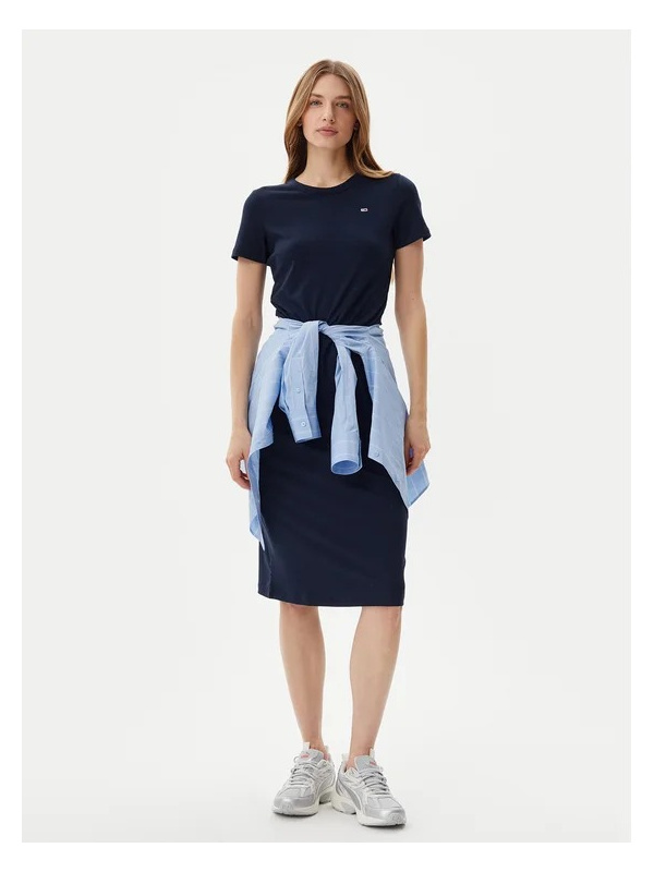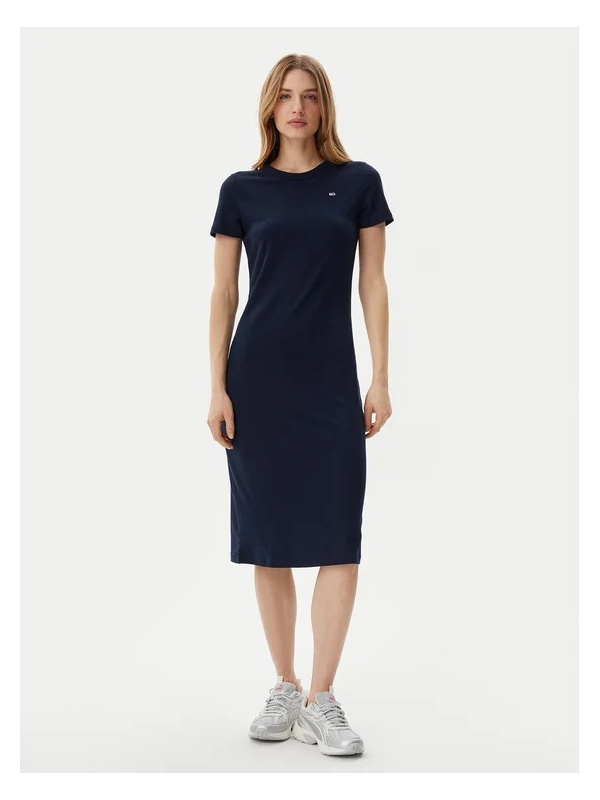 Ženska tamnoplava Tommy Hilfiger haljina kratkih rukava s logom na prsima