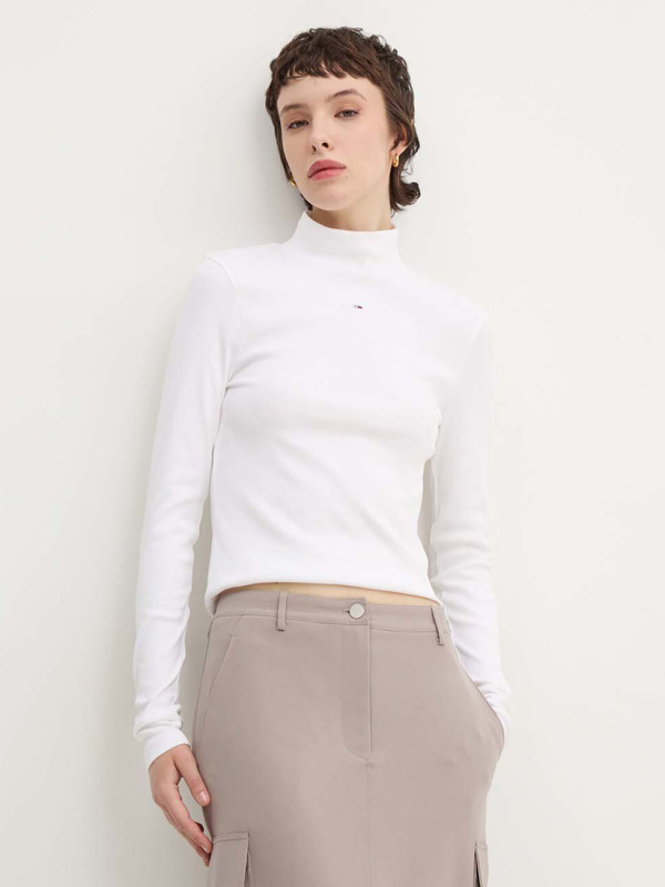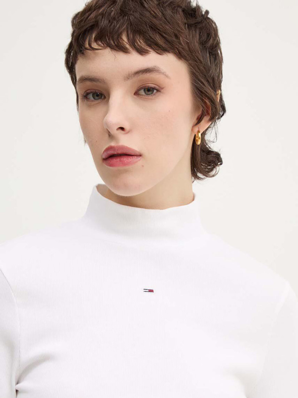 Ženska bijela Tommy Hilfiger majica dugih rukava s dočevitom i logom na prsima