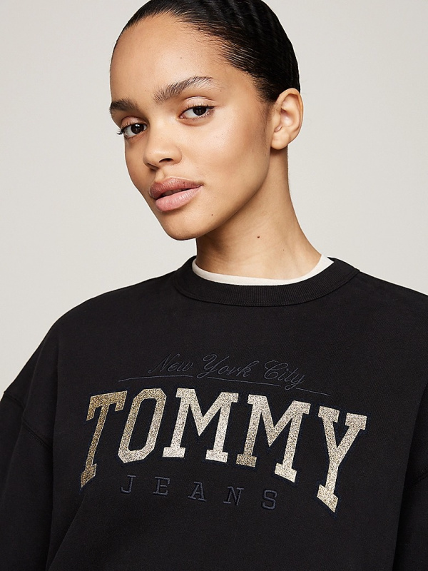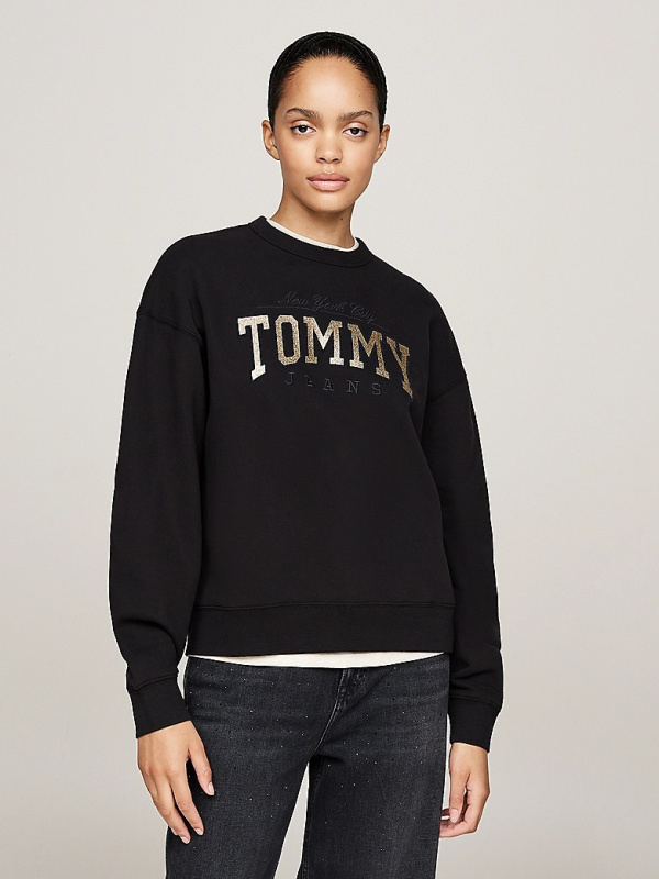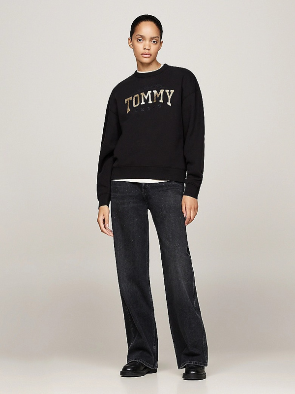 Ženska crna Tommy Hilfiger boxy fit dukserica sa svjetlucavim logotipom