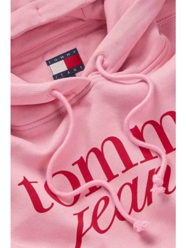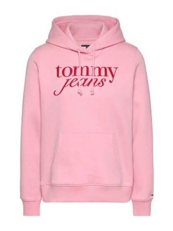 Ženska roza Tommy Hilfiger dukserica s logoma na prsima i kapuljačom