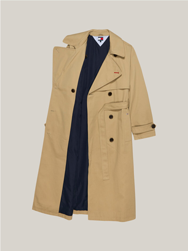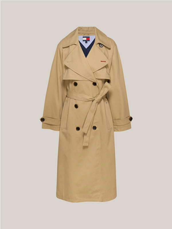 Ženski dugački pamučni Tommy Hilfiger bež baloner s preklopnim kopčanjem i kaišem