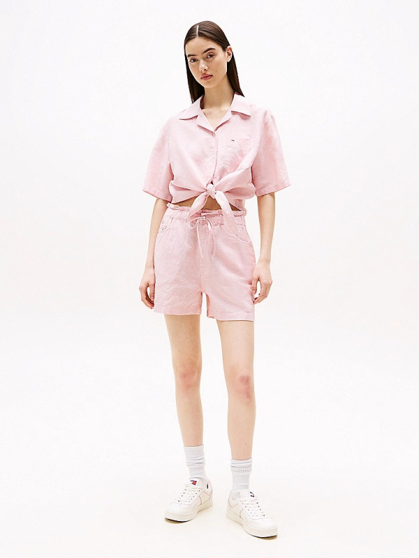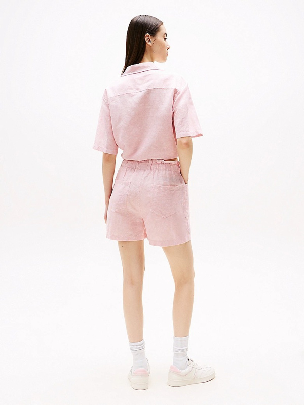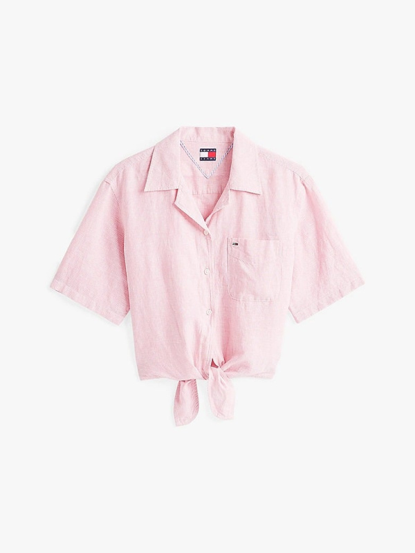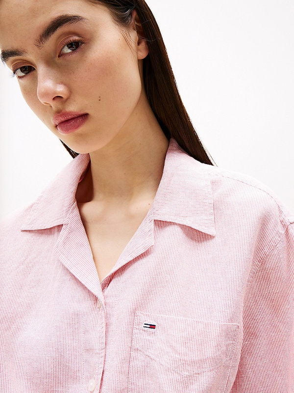 Ženska roza Tommy Hilfiger cropped fit košulja kratkih rukava s prugastim uzorkom