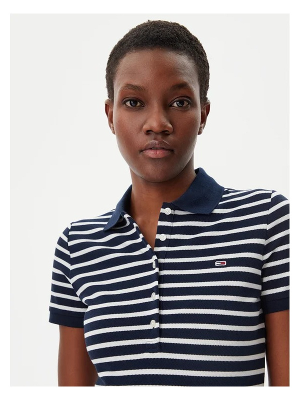 Ženksa tamnoplava Tommy Hilfiger polo haljina na pruge s logom