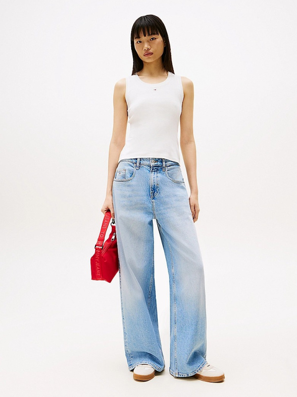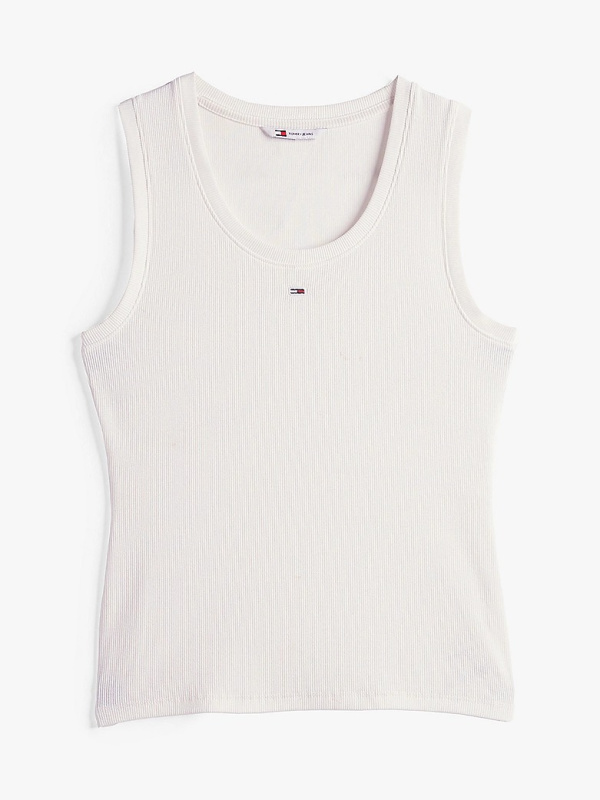 Ženski bijeli Tommy Hilfiger rebrasti top s logom na prsima