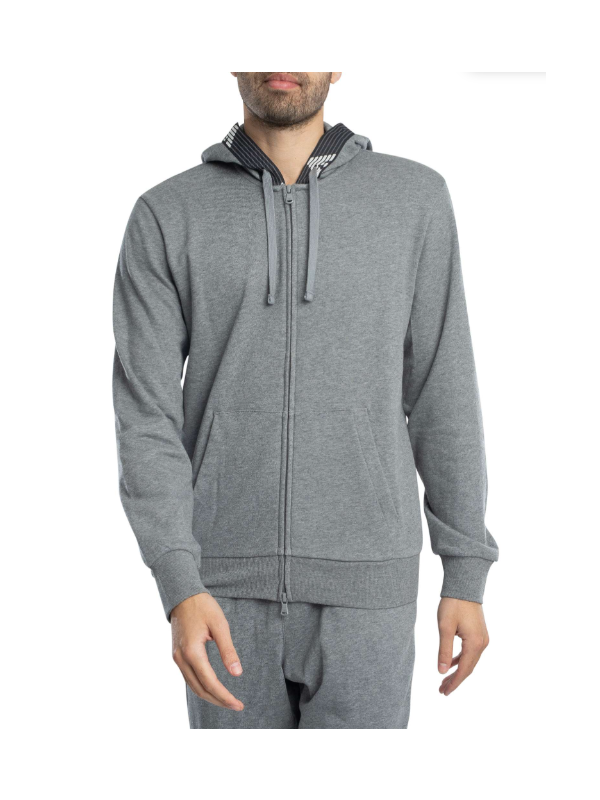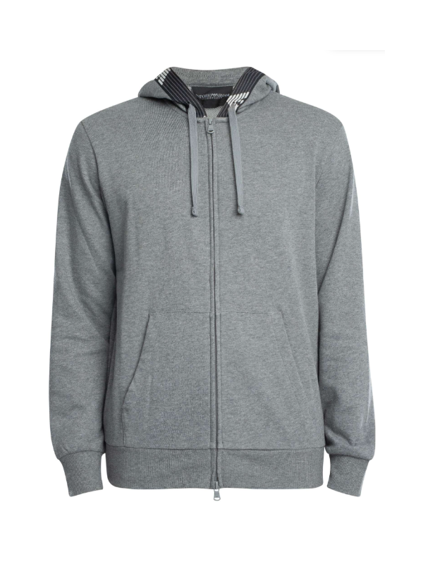 Muška siva EA7 dukserica s kapuljačom, patentnim zatvaračem i džepovima