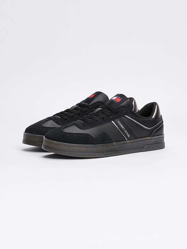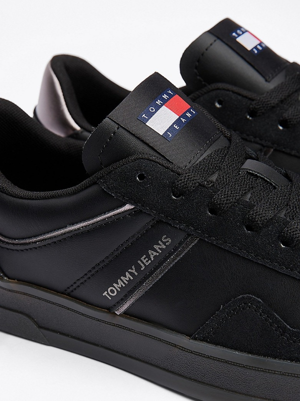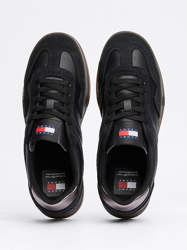 Ženske crne Tommy Hilfiger Greenwich kožne tenisice s logotipom
