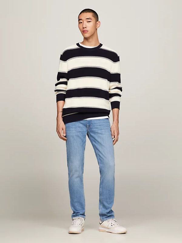 Ove pripijene ravne Tommy Hilfiger farmerice imaju blago ispranu boju s izblijedjelim detaljima na nogavicama za ležeran izgled.